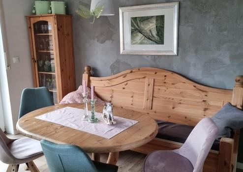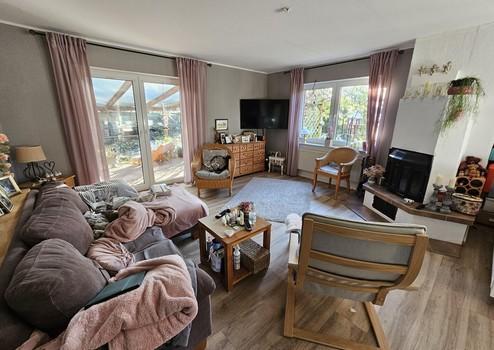 Das Wohnzimmer ist momentan als Wohnzimmer und Nähzimmer genutzt. Hier könnte leicht noch ein Bereich abgeteilt werden um ein Büro zu schaffen.