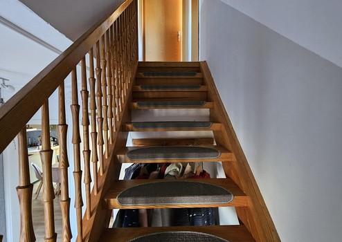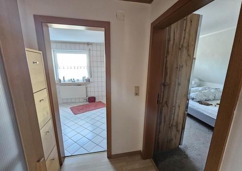 Die Böden sind unten komplett mit Vinyl verlegt, welches vollflächig verklebt wurde. Das kleine Gästebad unten ist komplett renoviert worden. Ein Wandhängendes Klo wurde montiert.