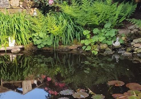 Einfamilienhaus mit Caport, Gewächshaus, Gartenhaus und Teichen
