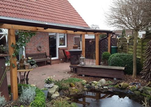 anbei verkaufen wir unser Einfamilienhaus in Neermoor. Das Haus besitzt einen wunderschönen Garten mit 3 Teichen, einem Gewächshaus und ein großes Gartenhaus. Unter dem Caport ist der Zugang zur Nebeneingangstür und Zugang zu einem Schuppen. Die Nebeneingangstür sowie die Haupteingangstür wurden letztes Jahr erneuert. Im gleichen Jahr wurde das gesamte Erdgeschoss neu gestaltet.