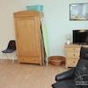 Wohn-/Schlafzimmer mit zwei Ledersesseln, Tisch, Kommoden, Schreibtisch mit Stuhl, DVBT-TV. Kabel-Anschluss vorhanden, Nutzung auf eigene Kosten.