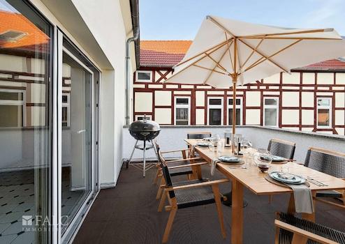 Die erste Wohnung erstreckt sich über ca. 140 m² und bietet viereinhalb Zimmer sowie eine wunderschöne Terrasse. Ein besonderes Highlight ist das knapp 40 m² große Wohnzimmer mit direktem Blick auf das Uenglinger Tor – ein einzigartiger Ausblick mit historischem Flair. Die Wohnung wurde im Jahr 2010 saniert und überzeugt durch Großzügigkeit, Helligkeit und eine hochwertige Wohnatmosphäre.