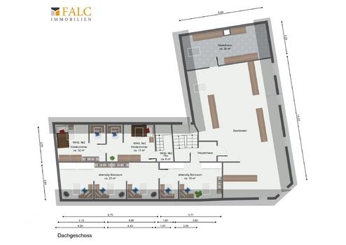 Im Dachgeschoss stehen neben viel Stauraum auf dem Dachboden und einem separaten Abstellraum zusätzlich zwei ehemalige Büroräume mit einer Fläche von ca. 40 m² zur Verfügung. Diese sind mit Fenstern und Heizkörpern ausgestattet, zählen jedoch nicht zur angegebenen Wohnfläche und bieten vielseitige Nutzungsmöglichkeiten, z. B. als Hobby-, Arbeits- oder Lagerräume.