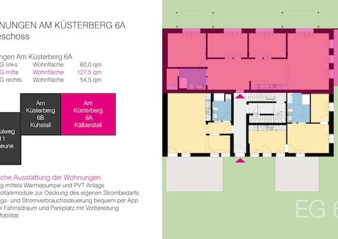 In dem einzigartigen Projekt „Wohnen am Küsterberg“ wird historische Bausubstanz mit modernem Wohnkomfort und ökologischer Bauweise verbunden. Diese Wohnung bietet Ihnen ein exklusives Zuhause mit hohem Wohnwert und nachhaltiger Energieversorgung.