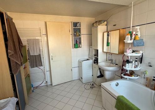 Die Wohnung ist mit einer Einbauküche ausgestattet, die funktionsfähig und schon länger im Gebrauch ist. Die ganze Wohnung ist mit Laminat verlegt, welches vor 10 Jahren gelegt wurde. Im Bad gibt es eine Badewanne und reichlich Platz für Waschmaschine und Trockner. Der Boden ist mit Fliesen verlegt.