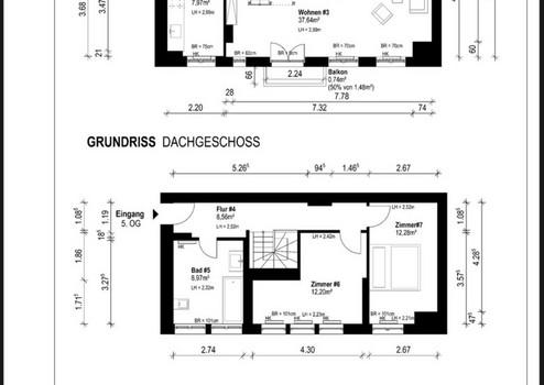This beautiful maisonette flat on the top floor is for sale free of commission and has three very spacious rooms spread over two floors (4th & 5th floor). The living room and kitchen are located on the lower level, the 4th floor. The top floor was converted in 1995/1996. The 5th floor has two 12 square metre rooms and an exceptionally spacious bathroom. On the 4th floor is the balcony with a quiet inner courtyard location. The flat also has a cellar. The complex does not have a lift.