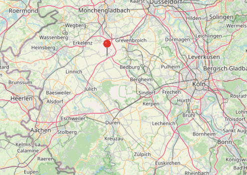 Die Verkehrsanbindung ist ebenfalls vorteilhaft. Die Bushaltestelle Grevenbroicher Straße liegt in unmittelbarer Nähe und bietet eine gute Anbindung an den öffentlichen Nahverkehr. Die Autobahn ist in wenigen Minuten erreichbar, was eine schnelle Verbindung zu den umliegenden Städten ermöglicht. Der nächste Flughafen, Düsseldorf, ist ca. 60 Kilometer entfernt und bietet internationale Anbindungen.