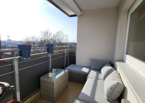 •gemütlicher Balkon mit Sitzlounge und weitem Blick über Wedel
