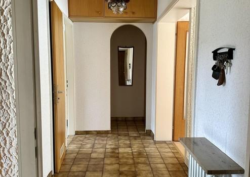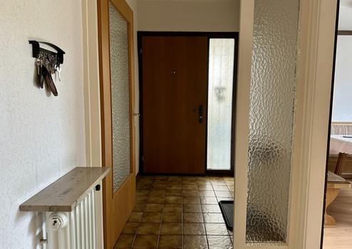 Sie betreten das Haus über einen geschützten Windfang und gelangen in einen zentralen Flur. Von hier sind ein helles Zimmer, das Gäste WC, die Küche sowie das großzügige Wohnzimmer erreichbar. Der Flur bietet außerdem einen separaten Bereich für die Garderobe und den Zugang zum Keller. Vom Wohnzimmer aus eröffnet sich der Blick und Zugang zur Terrasse und dem Garten - perfekt für entspannte Stunden im Freien.