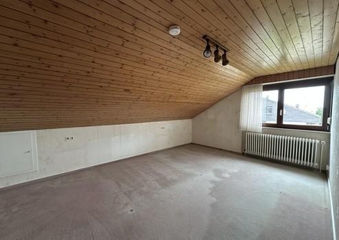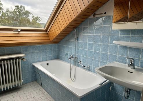 Im Obergeschoss befinden sich ein Schlafzimmer, ein weiteres Zimmer sowie ein Badezimmer mit Badewanne. Das Bad ist funktional geschnitten und erfüllt alle Anforderungen des Alltags, während die Schlafräume durch ihre angenehme Größe und Helligkeit überzeugen.