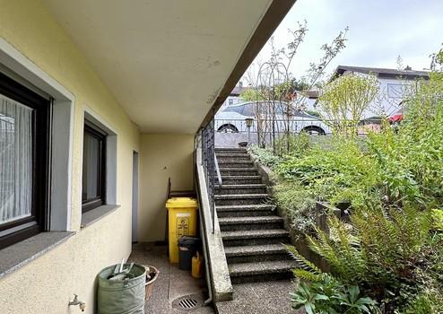 Ein vollwertiges Kellergeschoss beherbergt neben Heizungsraum und Kellerraum eine Einliegerwohnung mit separatem Außenzugang. Diese Wohnung verfügt außerdem über einen eigenen Gartenabschnitt mit Terrasse - ideal für Familie / Eltern, Gäste oder als zusätzliche Mieteinnahme. Selbstverständlich ist die Wohnung in Hanglage so gestaltet, dass ausreichend Tageslicht vorhanden ist.