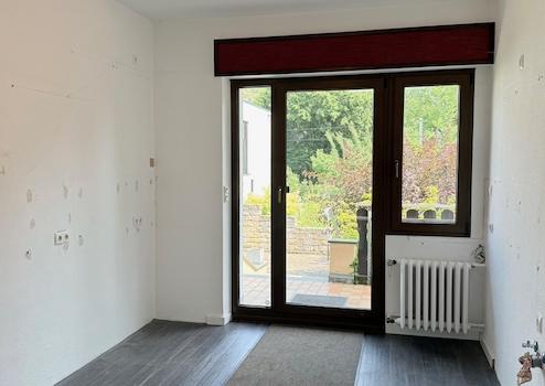 Die Diele geradeaus erreicht man die helle und geräumige Küche. Sowohl vom Wohnzimmer als auch von der Küche erreicht man das angrenzende Esszimmer / Arbeitszimmer.