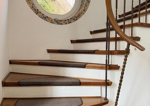 von der Diele im Erdgeschoss gelangt man über alle massive Holztreppe in das Obergeschoss.