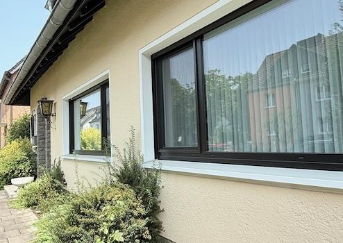 . Dreifachverglasung mit Kunststofffenster im EG aus ca. 2023 - im Wohnzimmer große Panoramafenster-.