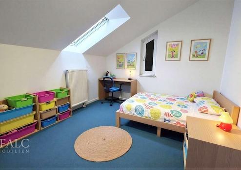 Auf dieser Ebene befindet sich zudem ein Kinder- oder Arbeitszimmer, das sich hervorragend als Homeoffice, Gäste- oder Spielzimmer eignet. Ergänzt wird das Raumangebot durch ein separates Gäste-WC sowie ein Tageslichtbad, das mit Badewanne und Dusche sowohl Funktionalität als auch Komfort für den Familienalltag bietet.