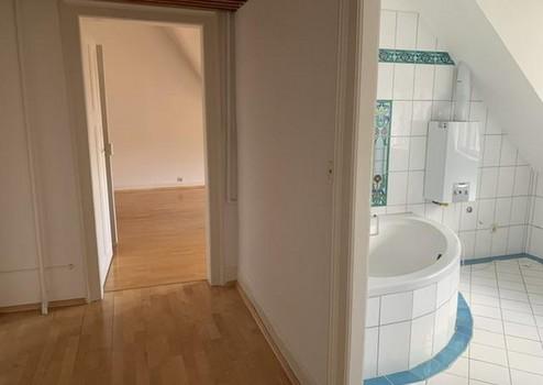 Der separaten Zugang zur Dachgeschosswohnung erfolgt über eine Wendeltreppe im Türmchen. Die Dachgeschosswohnung verfügt über eine gute Innenausstattung und bietet aufgrund Ihrem Grundriss ausreichend Platz für Familien oder Paare, die eine zentrale Wohnlage in ruhiger, grüner Innenstadtlage von Baden-Baden suchen. Zur Ausstattung gehört eine Einbauküche, Bad mit Duschwanne sowie ein separates WC. Ein Kellerabteil, ein großer Dachspeicher sowie ein Stellplatz sind ebenfalls inbegriffen. Der gemeinschaftlich nutzbare Garten lädt zum Entspannen ein. Haustiere sind nach Absprache erlaubt. Die Wohnung ist ab sofort verfügbar.