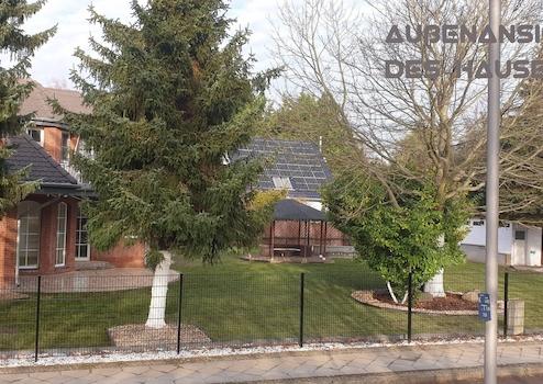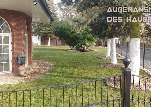 Das ca. 1.131 m² große, sonnige Eckgrundstück ist gärtnerisch ansprechend und zugleich pflegeleicht angelegt. Eine Beregnungsanlage unterstützt die komfortable Gartenpflege. Die großzügige Terrasse bietet viel Platz für Familie und Gäste.