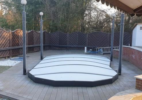 Ein besonderes Highlight ist der Swimmingpool mit elektrischer Abdeckung. Der Pool wird zusätzlich über zwei Solarkollektoren beheizt, was die Nutzung komfortabler macht und die Saison verlängern kann. Die umliegenden Terrassen-/Deckflächen schaffen zusätzliche Aufenthaltsqualität und bieten – je nach Sonnenstand – schöne Sonnenplätze bis in die Abendstunden.