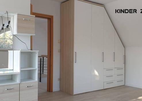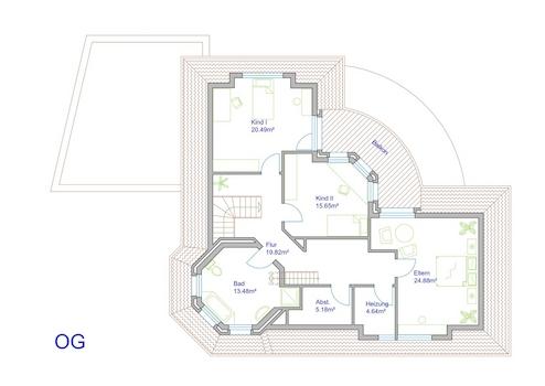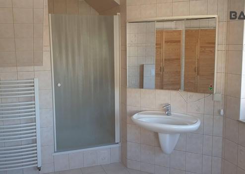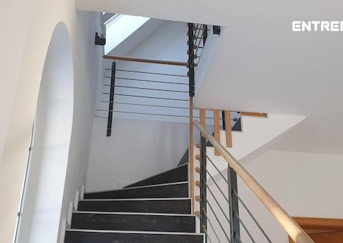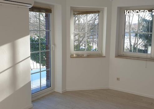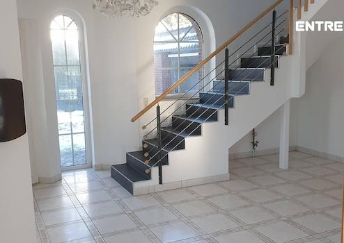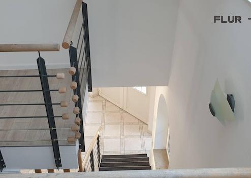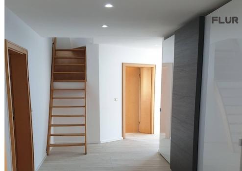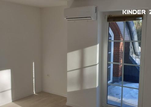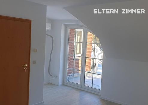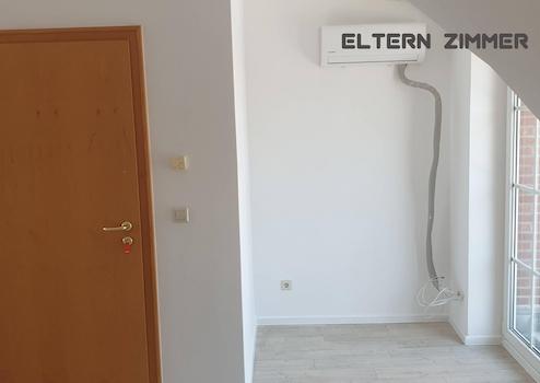 Eine elegante offene Treppe führt in das Obergeschoss. Auf dieser Ebene stehen drei gut geschnittene Zimmer zur Verfügung sowie ein großzügiges Tageslichtbad mit Wanne und Dusche. Der Balkon mit Gartenblick ist von mehreren Zimmern aus erreichbar und bietet einen schönen Platz zum Entspannen. Ein zusätzlicher Raum ergänzt diese Etage sinnvoll (z. B. als Abstell-/Technikfläche). Für zusätzlichen Wohnkomfort sorgen drei Klimageräte (Splitgeräte) im Obergeschoss – jeweils eines in jedem Schlafzimmer.
