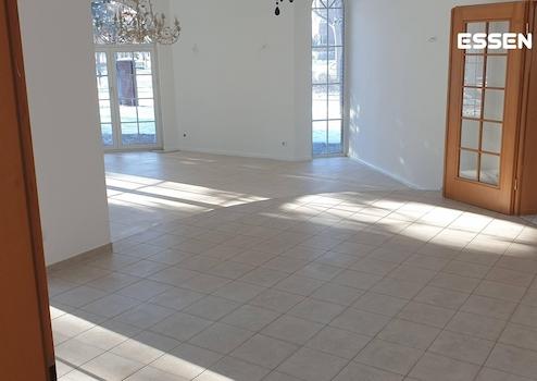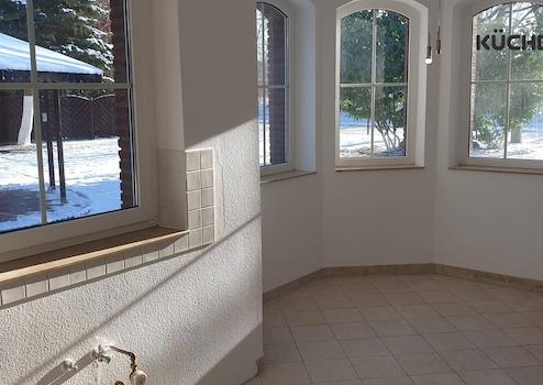 Die Küche ist räumlich ideal angebunden und verfügt über einen direkten Zugang zur Terrasse. Aktuell ist keine Einbauküche installiert – Anschlüsse sind vorhanden, sodass Käufer die Küche nach eigenen Vorstellungen planen und gestalten können. Ergänzt wird das Erdgeschoss durch einen praktischen Hauswirtschaftsraum sowie ein Gäste-WC.