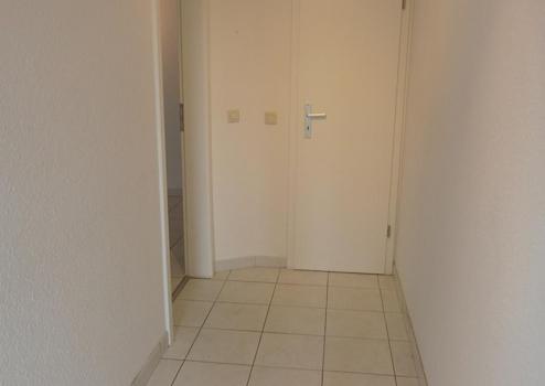 Die Wände sind mit Rauhfaser beklebt und weiss gestrichen