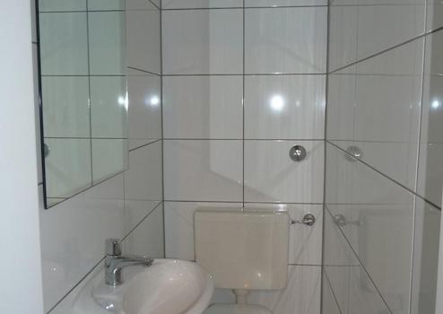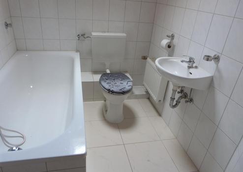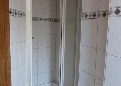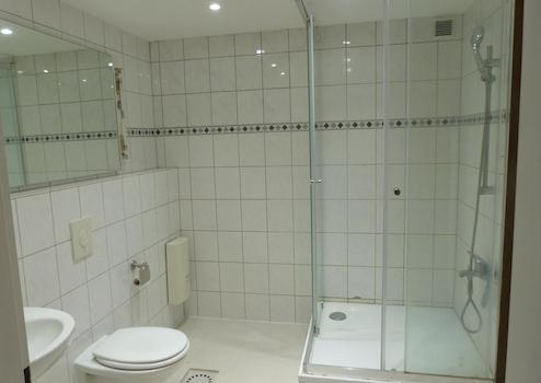 Ein weiteres weiss gefließtes großes Bad mit Dusche, WC und Waschbecken befindet sich ebenfalls im Keller.