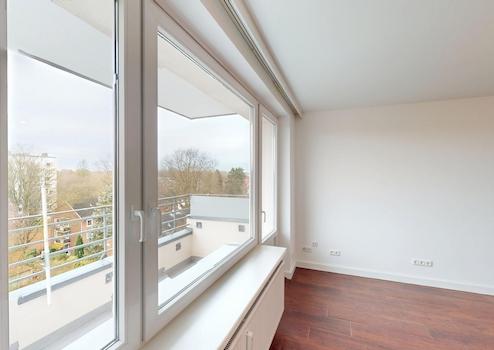 2015 kernsanierte 2,5-Zimmer-Wohnung mit ca. 73 m² Gesamtfläche und Süd-West-Balkon im 6. Obergeschoss. Geeignet für Singles und Paare, die eine saniert strukturierte Wohnung mit freiem Blick ins Grüne suchen.