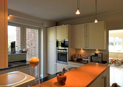 Siematic-Einbauküche, hochwertige Bäderausstattung, Kombination historischer Elemente mit moderner Funktionalität.