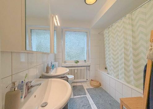 Diese zur Vermietung stehende 3-Zimmer-Wohnung befindet sich im 2. Obergeschoss eines gepflegten Mehrfamilienhauses in wohnlichem Umfeld in Ratingen-Ost. Auf großzügigen ca. 103 m² befinden sich zwei geräumige Schlafzimmer, eine separate Küche, ein Tageslichtwannenbad, ein separates Gäste-WC sowie ein lichtdurchfluteter Wohn-Essbereich mit Zugang zu dem teils überdachten Balkon. Ein Kellerraum gehört zum Angebot dazu. Im gemeinschaftlichen Wasch- und Trockenkeller stehen Waschmaschinen und ein Trockner als Münzgeräte zur Verfügung (in der Wohnung ist kein Anschluss vorhanden). Ein PKW-Stellplatz kann für 40,- EUR angemietet werden.