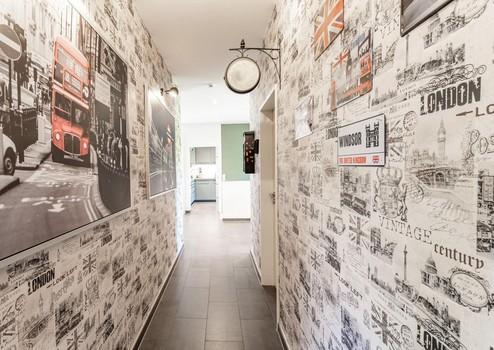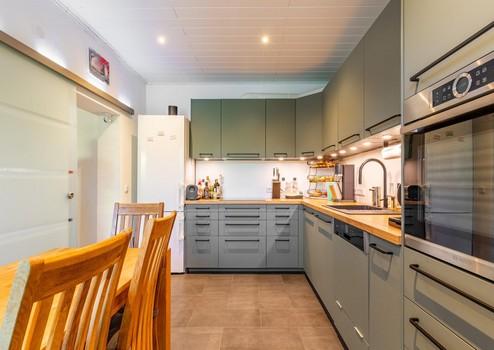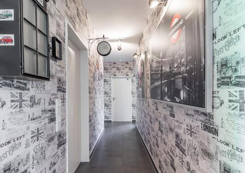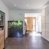 Große moderne Fliesen in Küche, Flur und Essbereich