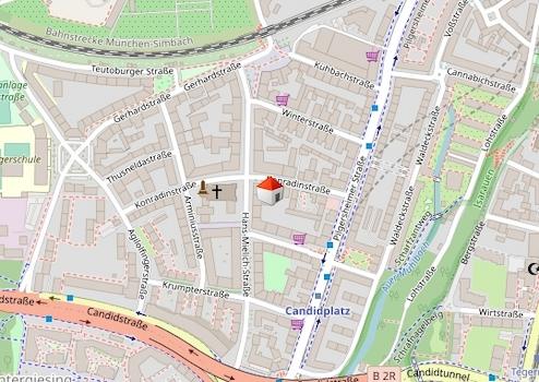 In ca. 3 Gehminuten zur U-Bahnhaltestelle "Candidplatz" U1 und zur Bushaltestelle 52; und in ca. 12 Gehminuten zur U-Bahnhaltestelle "Kolumbusplatz" U2;