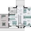 Im Dachgeschoss finden zwei Kinder ihr eigenes kleines Reich zum Schlafen und Spielen, mit einem eigenen Duschbad. Der Elternbereich besteht aus einem Schlafzimmer mit Ankleideraum und einem separaten Elternbad. Über das Elternschlafzimmer gelangt man auf die großzügige Dachterrasse, die einen idealen Rückzugsort darstellt.