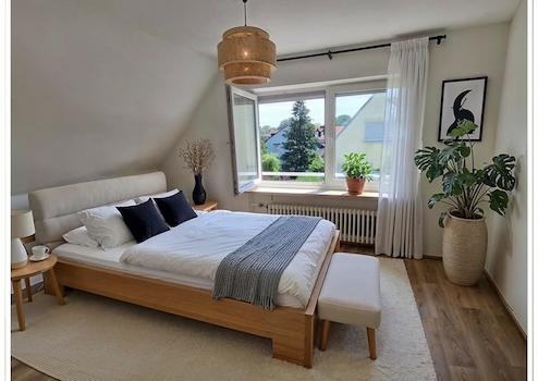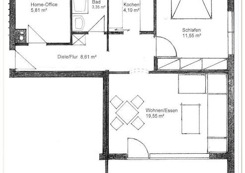 Das Schlafzimmer ist nach Südosten ausgerichtet, wird also auch an sonnigen Tagen nicht zu heiß. Das kleine Zimmer eignet sich bestens als Home-Office, Hauswirtschaftsraum, Gäste-Zimmer usw.