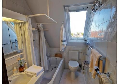 Das Bad ist zeitlos und modern in weiß gehalten und mit einer Badewanne ausgestattet.