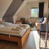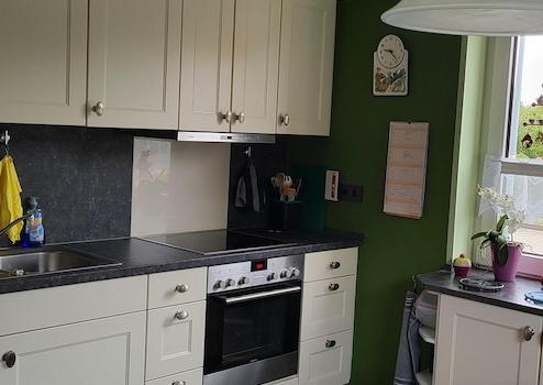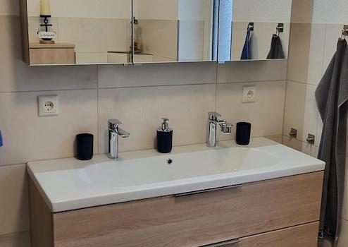 In der oberen Etage ist im Bad eine Wanne eingebaut. Dort befinden sich noch 4 Zimmer. Ein Zimmer wurde als Büro-/Bastelraum genutzt. Dort ist ein kleines Waschbecken eingebracht. Vor 2012 befand sich dort eine kleine Küche. Die anderen 3 Zimmer wurden als Kinderzimmer genutzt. Sie sind hell und gemütlich.