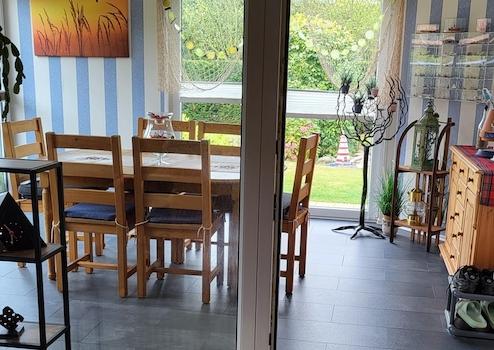 Das Einfamilienhaus wurde 1993 in massiver Bauweise errichtet. Im Erdgeschoss befinden sich zur Zeit die gemütliche Küche, ein Hauswirtschaftsraum mit Heizungsraum, ein Schlafzimmer sowie das Wohnzimmer mit angrenzendem Wintergarten (Fußbodenheizung). Von dort gelangt man direkt auf die Terrasse mit Blick auf das Grundstück. Eine weitere Terrasse in der Mitte des Grundstückes lädt zum Entspannen ein. In der unteren Etage wurde im Wohnzimmer das Parkett 2012 abgeschliffen und gewachst. Der Raum ist renovierungsbedürftig. Im Schlafzimmer wurde 2021 neuer Parkettboden verlegt. Im unteren Bad befindet sich eine ebenerdige Duschecke. Die Holztreppe nach oben kann eine Aufarbeitung gebrauchen.