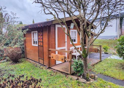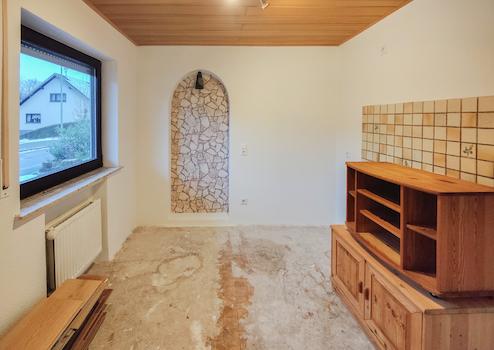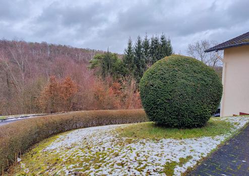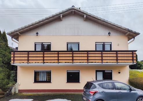 So wäre z.B. eine barrierefreie Wohnung im Souterrain denkbar, die über 2 Zimmer Küche und Bad verfügt. Weitere Kellerräume könnten der Wohnung zugeordnet werden. Alternativ kann der Wohnbereich im UG auch der Wohnung im EG zugeordnet werden, da es eine zentrale Innentreppe gibt.Im Erdgeschoss befindet sich der Hauptwohnbereich mit seinen 3 Zimmern, Küche und Bad. Vom Wohnzimmer aus gelangt man auf eine große überdachte Terrasse, die an der Rückseite des Hauses errichtet wurde. Straßenseitig befindet sich ein großer Balkon mit mehren Zugängen und herrlichem Ausblick in die Umgebung. Auf dem Grundstück wurde noch eine Gartenhütte platziert, die als Abstell- oder Partyhütte dienen könnte.