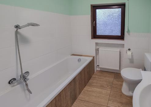 Die doppelverglasten Holzfenster stammen aus dem Baujahr des Hauses und verfügen über manuelle Rollläden. Das Bad im EG wurde erst letztes Jahr modernisiert; das Bad im UG vor ca. 10 Jahren. Das Haus hat erst kürzlich von Außen einen neuen Anstrich erhalten. Im Innenbereich besteht teilweise noch etwas Renovierungsstau.
