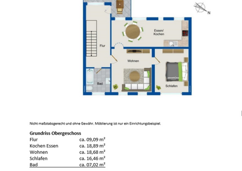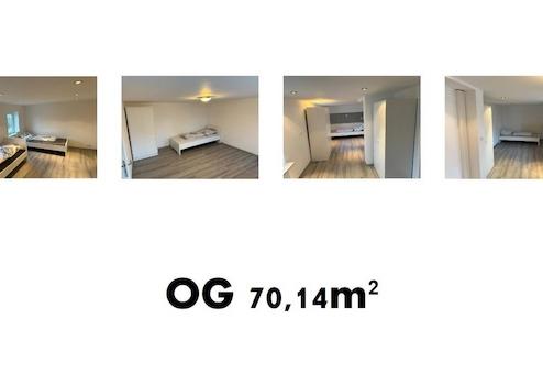 Obergeschoss a 4 Betten: Flur, Kochen+Essen, Wohnen, Schlafen, Bad = ca. 70,14 m²