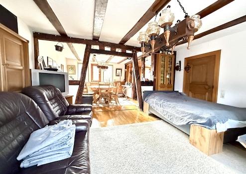 Dieses gepflegte Einfamilienhaus aus dem Baujahr 1870 vereint historischen Charme mit großzügigem Wohnkomfort. Auf ca. 180 m² Wohnfläche bietet das liebevoll erhaltene Fachwerkhaus viel Raum für Familie, Leben und individuelle Wohnideen. Das ausgebaute Dachgeschoss verfügt über ein modernes Badezimmer aus dem Jahr 2019 und erweitert den Wohnraum auf angenehme Weise.