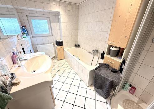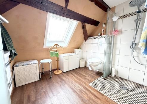 - Badezimmer im Obergeschoss, renoviert im Jahr 2019