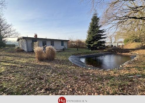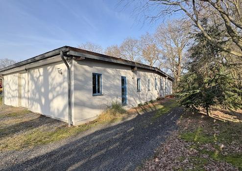 Der Außenbereich ist ebenso durchdacht gestaltet: Eine gepflegte Rasenfläche mit großem Teich ziert den rückwärtigen Garten, während die geschotterte Parkfläche im vorderen Bereich ausreichend Stellplätze für zahlreiche Fahrzeuge bietet.