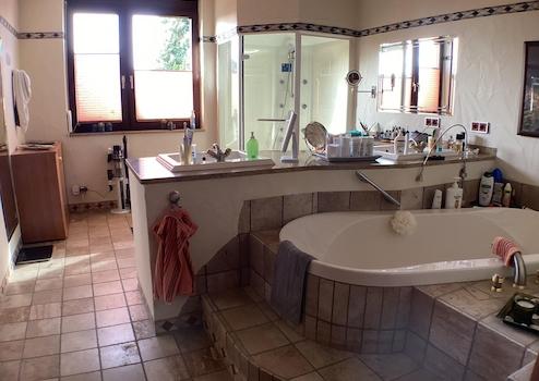 • exklusives Wellness-Bad (2005) mit Wanne, großer Dusche, Dampfdusche, Radio/Fernseher/DVD, Bidet, Urinal, WC und Gäste-WC, ca. 27m²