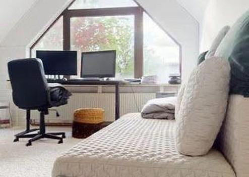 Im Obergeschoss erwarten Sie zwei helle Zimmer, ein Tageslichtbad mit Dusche und freistehender Badewanne, ein separates WC sowie ein Süd-West-Balkon. Der ausgebaute Spitzboden eignet sich ideal als Büro- oder Gästezimmer.