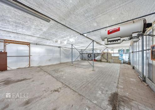 Großes Gewächshaus mit ca. 400 m² Fläche, ausgestattet mit Strom-, Wasser- und Abwasseranschluss sowie großen Toren. Flexible Nutzung möglich.