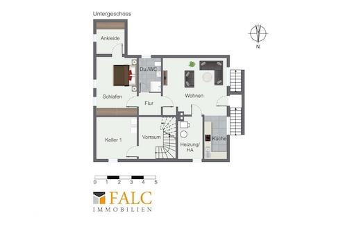 Der Kellerbereich ist als voll nutzbarer Raum ausgeführt und bietet normale Fenster, eine eigene Sanitäranlage sowie einen separaten Ein- und Ausgang.