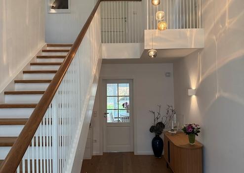 Dieses ansprechende Reihenendhaus inklusive Einbauten (Schreinerküche mit offener Feuer-/Grillstelle und Markengeräte wie Borakochfeld, Quooker, Liebherr Weinkühlschrank, Einbauschränke im Schlafzimmer und Büro, Designerpendelleuchte 9er CUBIE Designer Philipe Losboa Viso Lighting), überzeugt durch seine ruhige Lage, die gelungene Architektur und den großzügigen Garten mit Sondernutzungsrecht von ca. 350 m². Im Jahr 2020 wurde das Haus umfassend und hochwertig renoviert, wodurch ein modernes und helles Wohnambiente geschaffen wurde. Die Dachsanierung inklusive Dämmung erfolgte 2023, sodass sich die Immobilie in einem sehr gepflegten und zeitgemäßen Zustand präsentiert. Mit einer Wohnfläche von 138 m² auf zwei Etagen bietet das Haus viel Platz für Familien, Paare oder auch als Ferienimmobilie in bester Tegernsee-Lage.