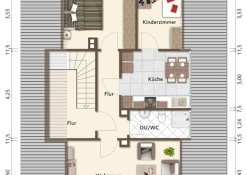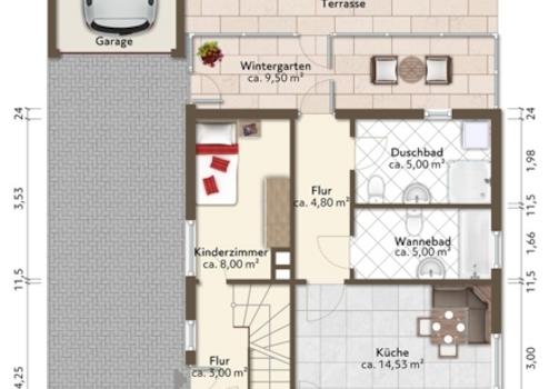 Die Wohnfläche von ca. 125 m² verteilt sich auf: