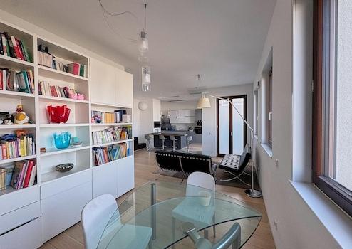 LOCATION Frankfurt's Ostend is a vibrant hub where industrial heritage meets modern luxury. This penthouse offers a prime "sandwich position" between two major parks: