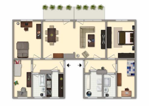 Bei den Bildern handelt es sich um Beispielbilder aus einer bereits zusammengelegten Wohnung.